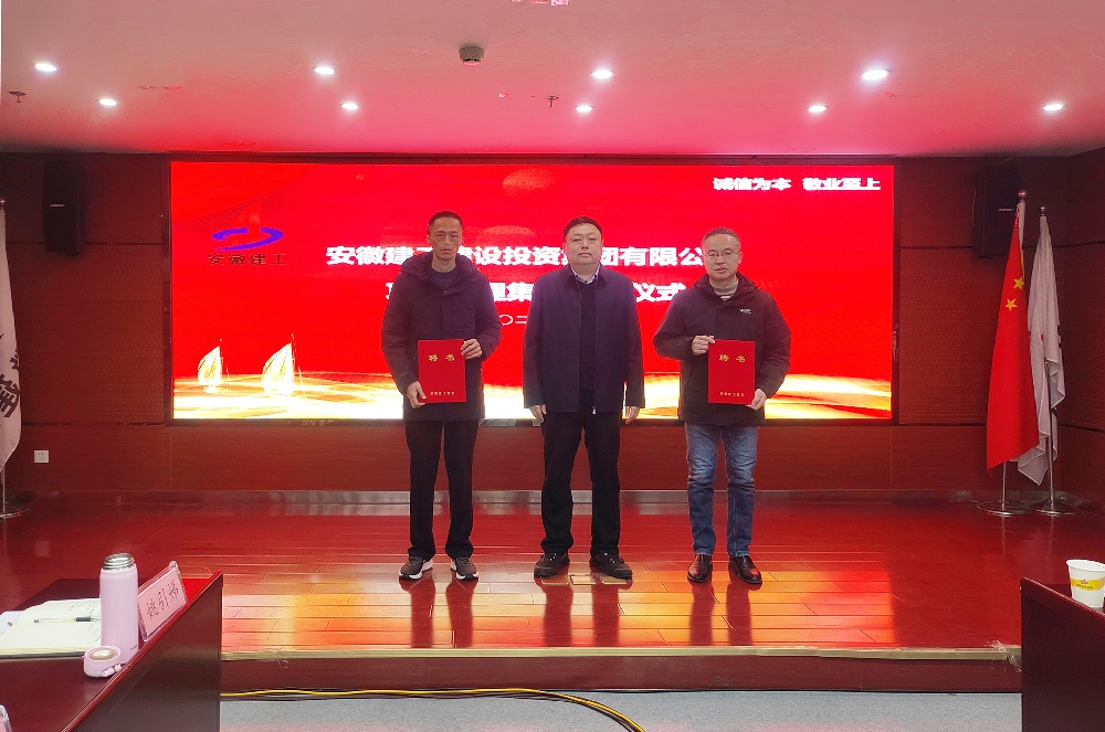 会上,公司党委副书记、工会主席干戈宣读了《安徽建工集团控股有限公司关于2025年度集团项目经理分级聘任的决定》,并传达了杨善斌书记在集团项目经理集中聘任仪式上的讲话精神。公司领导为项目经理代表颁发聘书。