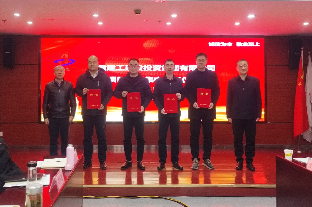2025年1月3日上午,建工建投集团在安建大厦8楼会议室举行项目经理集中聘任仪式。公司领导班子成员,分子公司主要负责同志、专职副书记,机关各部门负责人及项目经理代表参加。