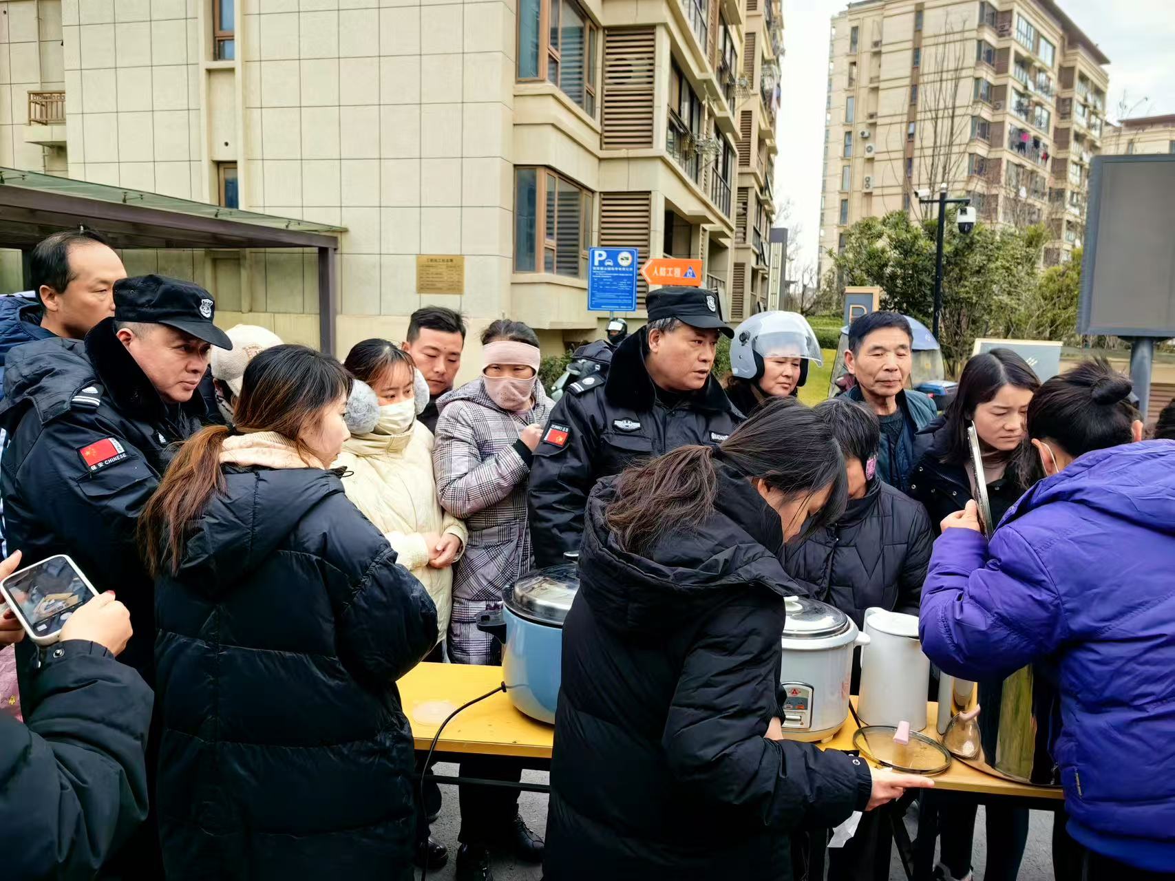 居民们纷纷闻讯赶来,老人们带着孩子,年轻人陪着长辈,大家欢声笑语,汇聚成一片欢乐的海洋。物业工作人员热情地为居民们盛上一碗碗热气腾腾的腊八粥,还细心地准备了一次性餐具,方便大家食用。现场暖意融融,邻里间的问候交谈声此起彼伏,情谊在这一碗粥中升温。