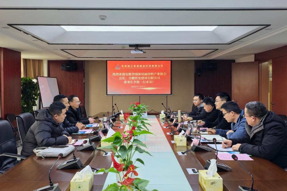 1月9日下午,安徽省墙体屋面材料产业协会会长、合肥佳安建材有限公司董事长李俊一行到访建工建材,公司党委副书记、董事、副总经理李鑫热情接待。