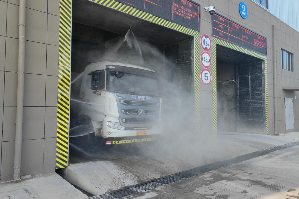 车辆在卸料完成后,进入自动冲洗平台,冲洗完成后驶离;原材料倒入仓库后,除尘设备会进行自动启动喷淋系统,确保粉尘不外溢;厂区内全天候实施湿式作业,从自动化喷淋系统,车辆运输冲洗,回流污水和废浆废渣处理等方面,实现了厂站生产混凝土过程中扬尘、废气、污水和噪声的“零排放”的目标……不断推进建材生产向着绿色低碳发展。