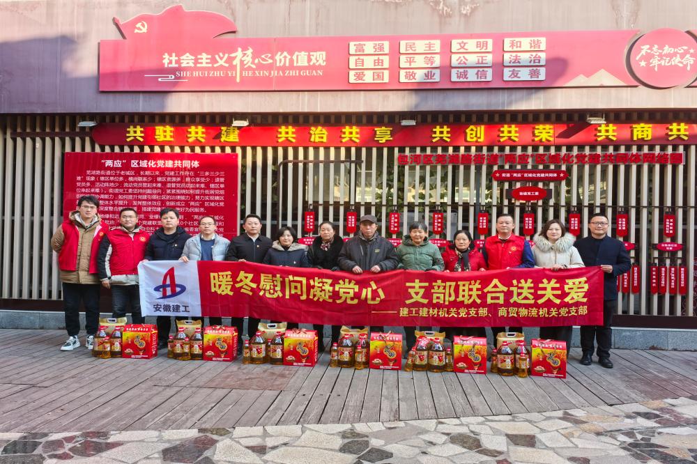 春节即将来临之际,为贯彻落实党的二十届三中全会精神,切实履行国企的社会责任,让更多困难群体感受到社会的温暖。1月17日上午,建工建材机关党支部联合商贸物流机关党支部开展“暖冬慰问凝党心 支部联合送关爱”慰问活动,为城南社区6名困难党员、4名困难群众送去关怀与温暖。