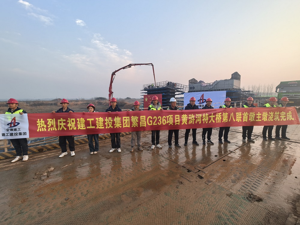 春节前夕,黄浒河特大桥施工现场依旧热火朝天。1月22日下午,建工建投集团繁昌区G236项目二标段黄浒河特大桥关键性节点第八联26#墩左幅主墩墩身顺利浇筑完成,标志着第八联悬臂浇筑正式迈入上部结构施工。