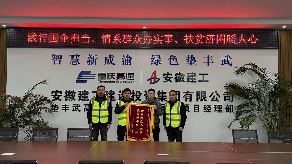 近日,重庆市武隆区火炉镇人民政府给送来一面印有“情系群众办实事,扶贫济困暖人心”的锦旗,感谢建工建投集团重庆垫丰武高速TJ09标项目在助力地方发展方面做出的努力。