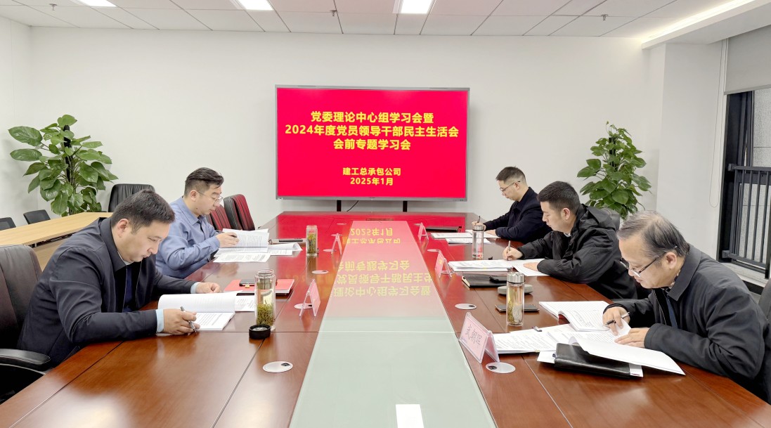 1月23日下午,建工总承包公司党委理论学习中心组开展民主生活会会前专题学习,党委书记、总经理傅宏林主持会议,公司领导班子成员参加会议。