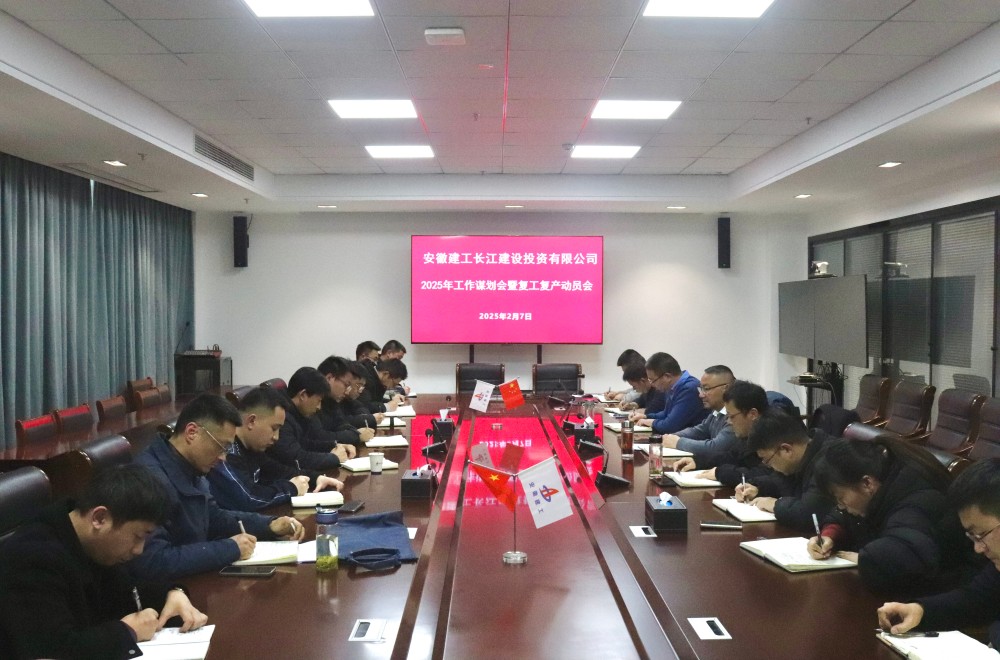 2月7日下午,安徽建工长江建投组织召开2025年工作谋划会暨复工复产动员会,全面总结2024年工作取得的成绩,客观分析不足,科学布局谋划2025年重点工作,进一步明确目标、统一思想,督促职工收心归位,迅速进入工作状态,书写公司高质量发展新篇章。公司党委书记、董事长、总经理代声庆出席会议并讲话,党委委员、副总经理陆琪主持会议。