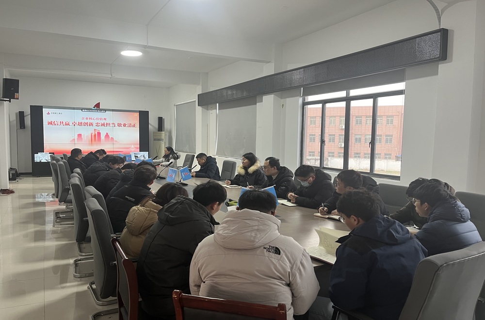 近日,安徽建工集团发布“诚信共赢、卓越创新、忠诚担当、敬业清正”的企业核心价值观。为进一步引导广大干部职工认真践行集团企业核心价值观,公司党委积极响应,迅速部署,利用“三会一课”、公司官网、宣传栏等多种形式,全面掀起学习宣贯热潮。