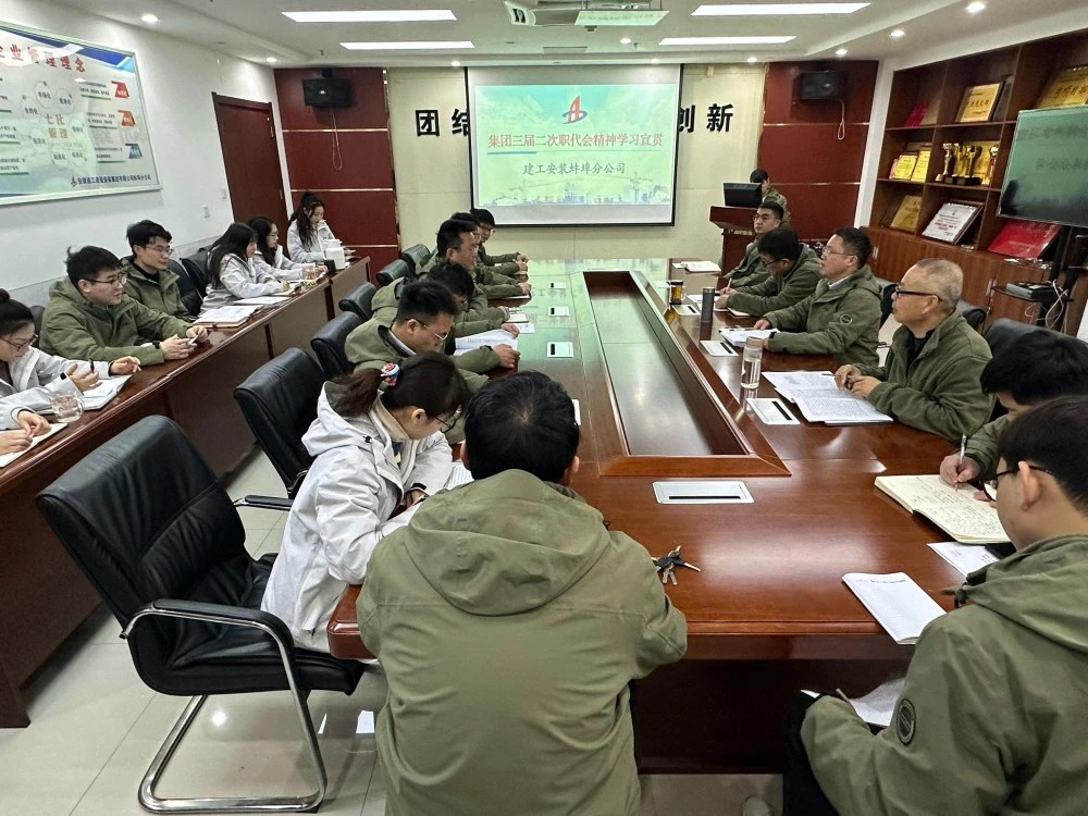 建工安装所属各单位迅速行动,第一时间召开专题会议,传达学习集团三届二次职代会暨2025年工作会议精神,掀起学习热潮。