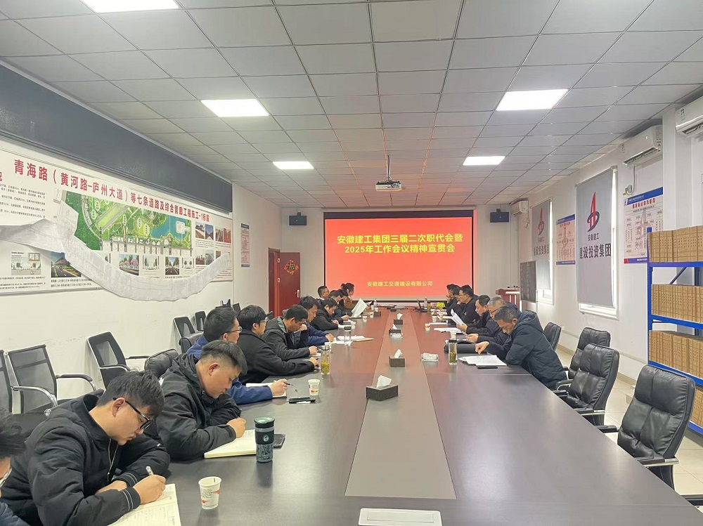 近日,建工建投集团安建交建公司召开学习宣贯集团三届二次职代会暨2025年工作会议精神专题会议。交建公司领导班子成员、各部门负责人、所属项目经理参加会议。