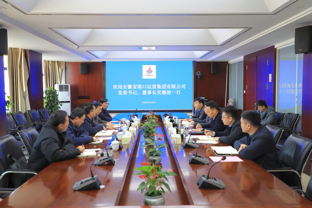 2月24日,安徽省港口运营集团有限公司党委书记、董事长吴德俊一行到访建工商贸物流,公司党委副书记、总经理张俊热情接待并就深化合作进行座谈交流。