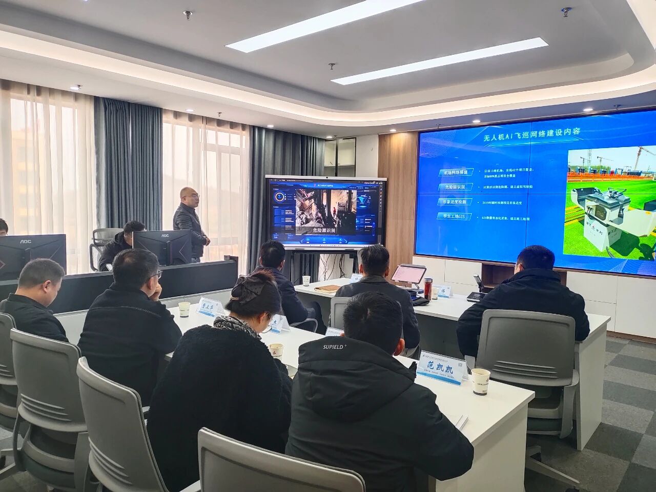 12月2日,蚌埠市住建局二级调研员李伟带队前往建工水利无人机智控中心调研指导。公司党委副书记、总经理杜海峰,党委委员、副总经理王志强参加。