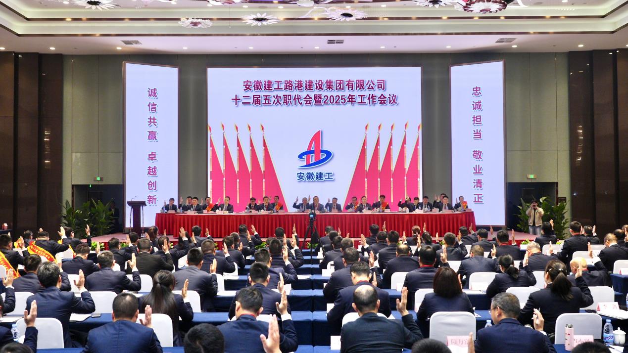 3月6日,安徽建工路港建设集团有限公司十二届五次职代会暨2025年工作会议在芜湖胜利召开。会议坚持以习近平新时代中国特色社会主义思想为指导,深入学习贯彻党的二十届三中全会精神以及习近平总书记考察安徽重要讲话精神,全面贯彻落实中央、省委经济工作会议和省“两会”精神,以及集团三届二次职代会暨2025年工作会议精神,总结2024年工作,分析当前形势,部署2025年工作任务,动员全体职工迎难而上,奋发有为,在千帆竞发中抢占先机,在厚积薄发中蓄力前行,为奋力推进集团转型发展、高质量发展、大发展贡献路港力量。