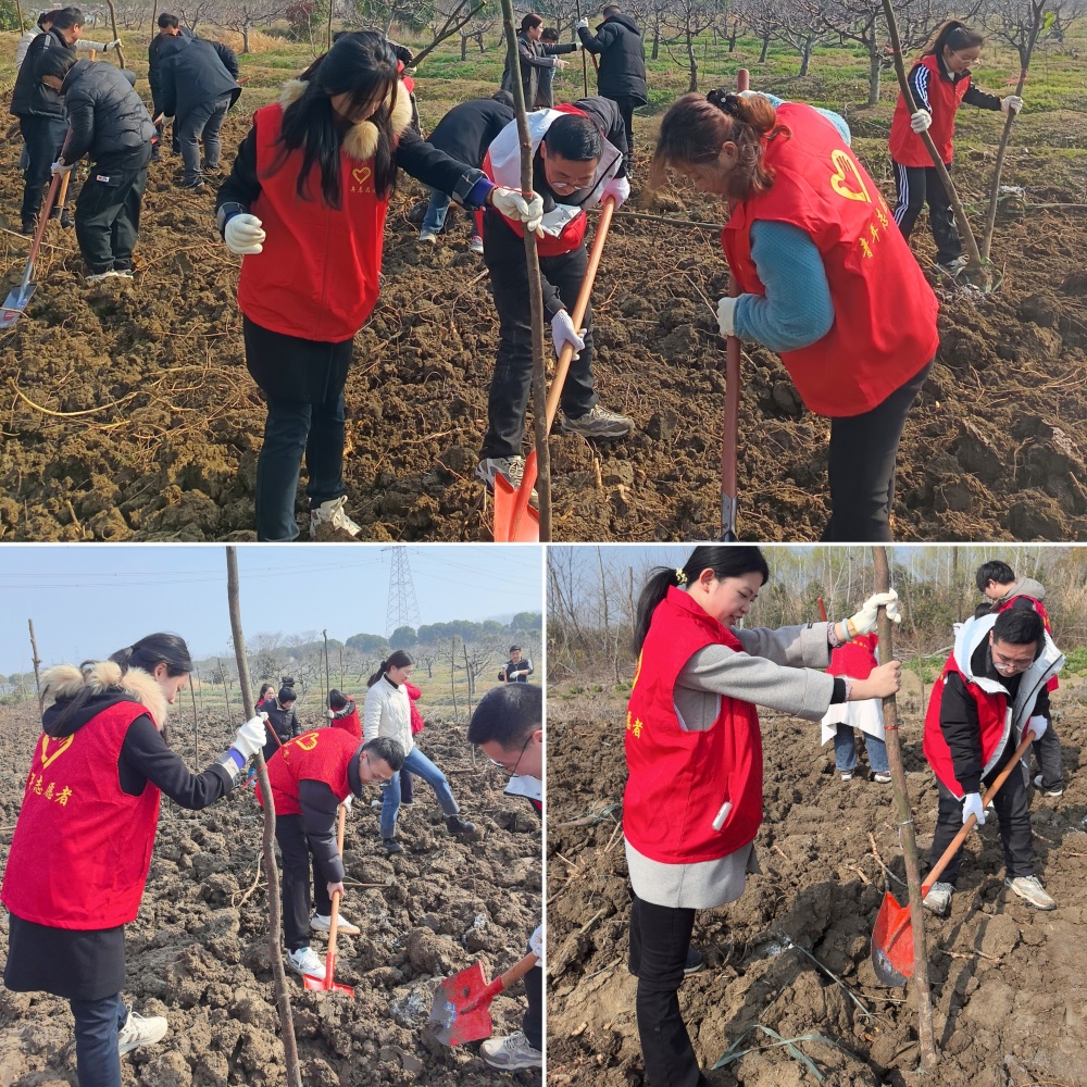 植树现场,大家分工协作、挥锹铲土、扶树填坑、培土压实,气氛热烈而有序,确保“栽一棵活一棵,种一片绿一片”,一株株新栽树苗迎风挺立,成为春天里一道亮丽的风景。