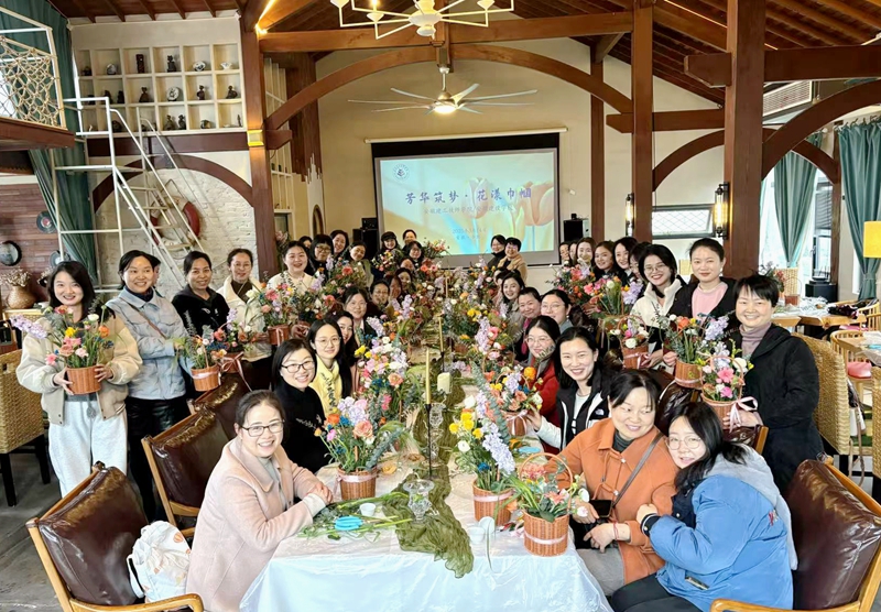 为热烈庆祝“三八”国际劳动妇女节,丰富女教职工的业余文化生活,3月14日,安徽建工技师学院工会精心组织学院 120 名女教职工,奔赴风景秀丽巢湖湖畔,在“后岸西舍”开展了一场温馨的花艺插花和围炉煮茶活动。