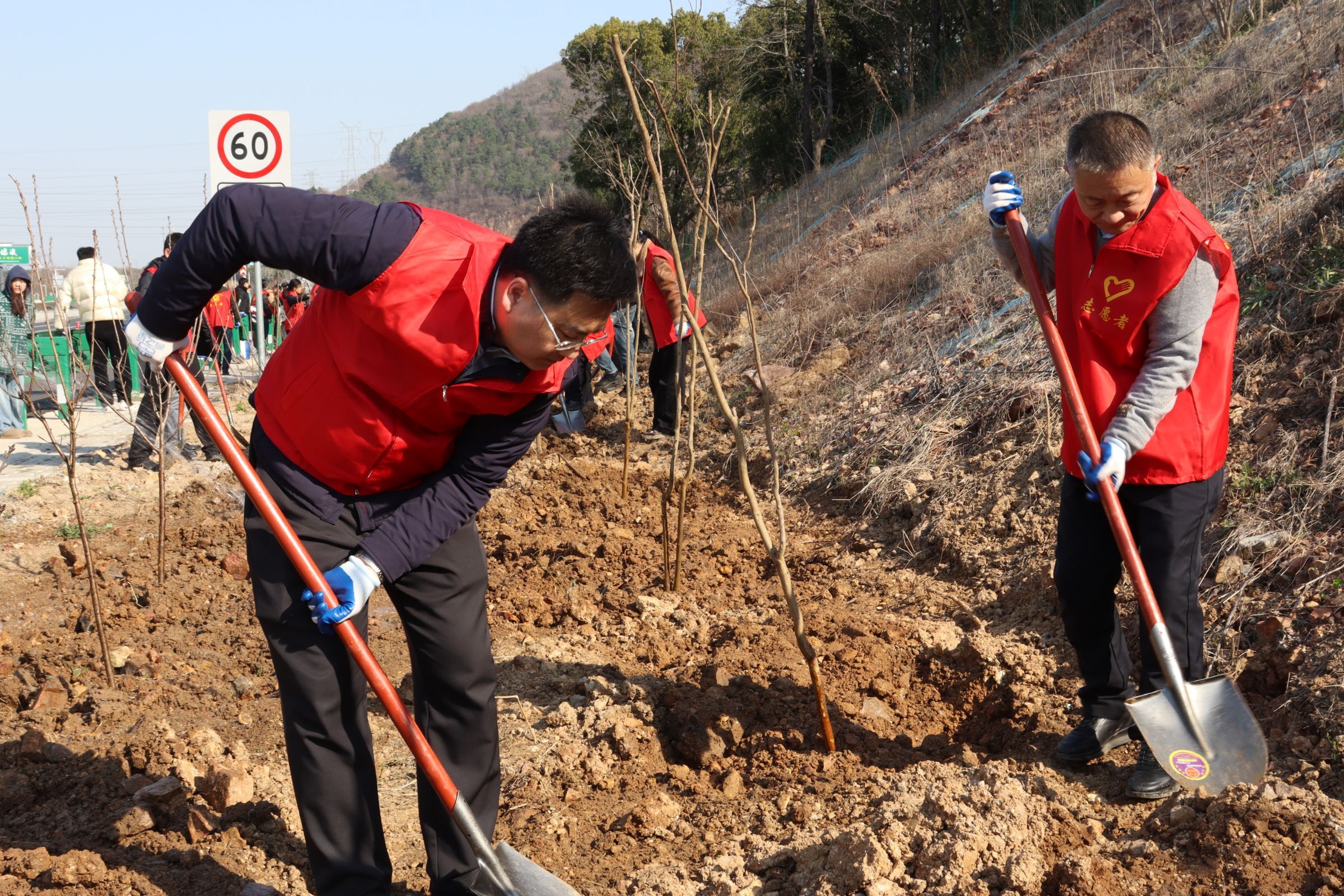 活动现场,参与者们分工明确、配合默契。铁锹挥舞,泥土翻飞;扶苗培土,树苗挺立;提水浇灌,细心呵护,确保每一株树苗都能茁壮成长。经过一上午的辛勤劳动,一棵棵新苗在春风中昂首挺立,为马鞍山市生态建设注入新绿。