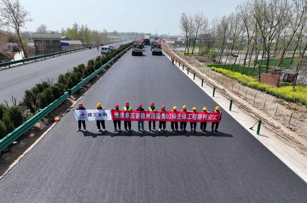 4月5日,建工水利徐州至淮北至阜阳高速公路宿州段路面工程02标项目顺利完成路面沥青上面层铺筑,标志着项目主体工程全面完成,超前实现重大节点目标,为今年7月全线通车奠定坚实基础。