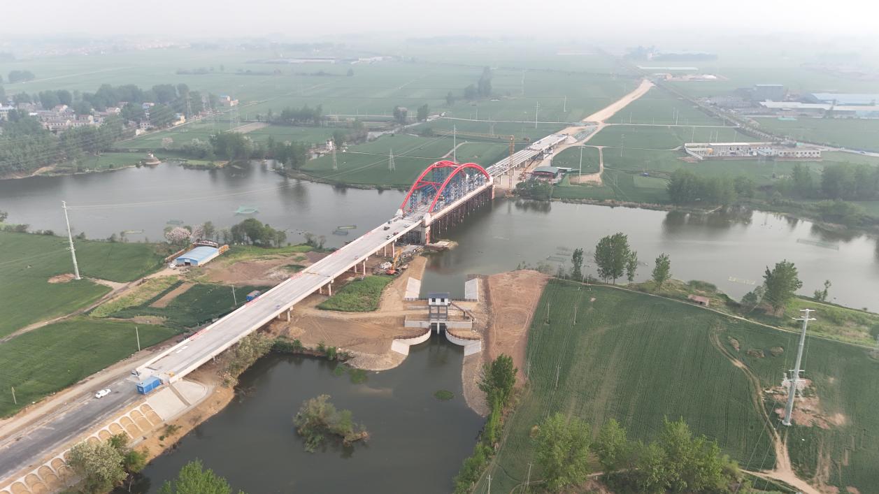 近日,建工路港沱浍河航道(李口至临涣段)整治工程施工 02 标项目箱梁架设安装和钢管拱混凝土顶升施工顺利完成。这两个关键节点的突破标志着项目建设进入了全面提速新阶段。