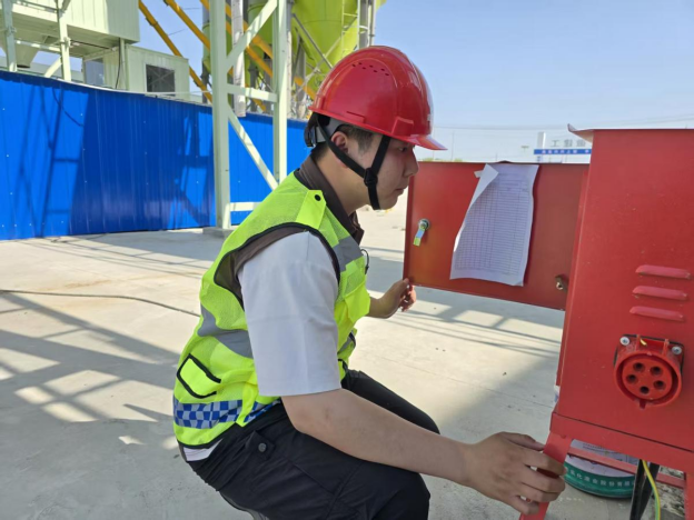 在 S02 徐商高速宿州段路基 03 标场站建设工地,安全部部长史浩然每日清晨便开始对拌和站进行安全巡查。他仔细检查设备防护装置、作业人员劳保用品佩戴情况以及临时用电规范等细节,不放过任何一处安全隐患,为即将到来的全面施工阶段筑牢安全基础。工程部部长张永兵则将工作重心放在拌和站和钢筋厂的质量管控上,他反复研究图纸和技术资料,认真检查设备调试情况,精心优化施工方案,力求为工程质量提供坚实保障。