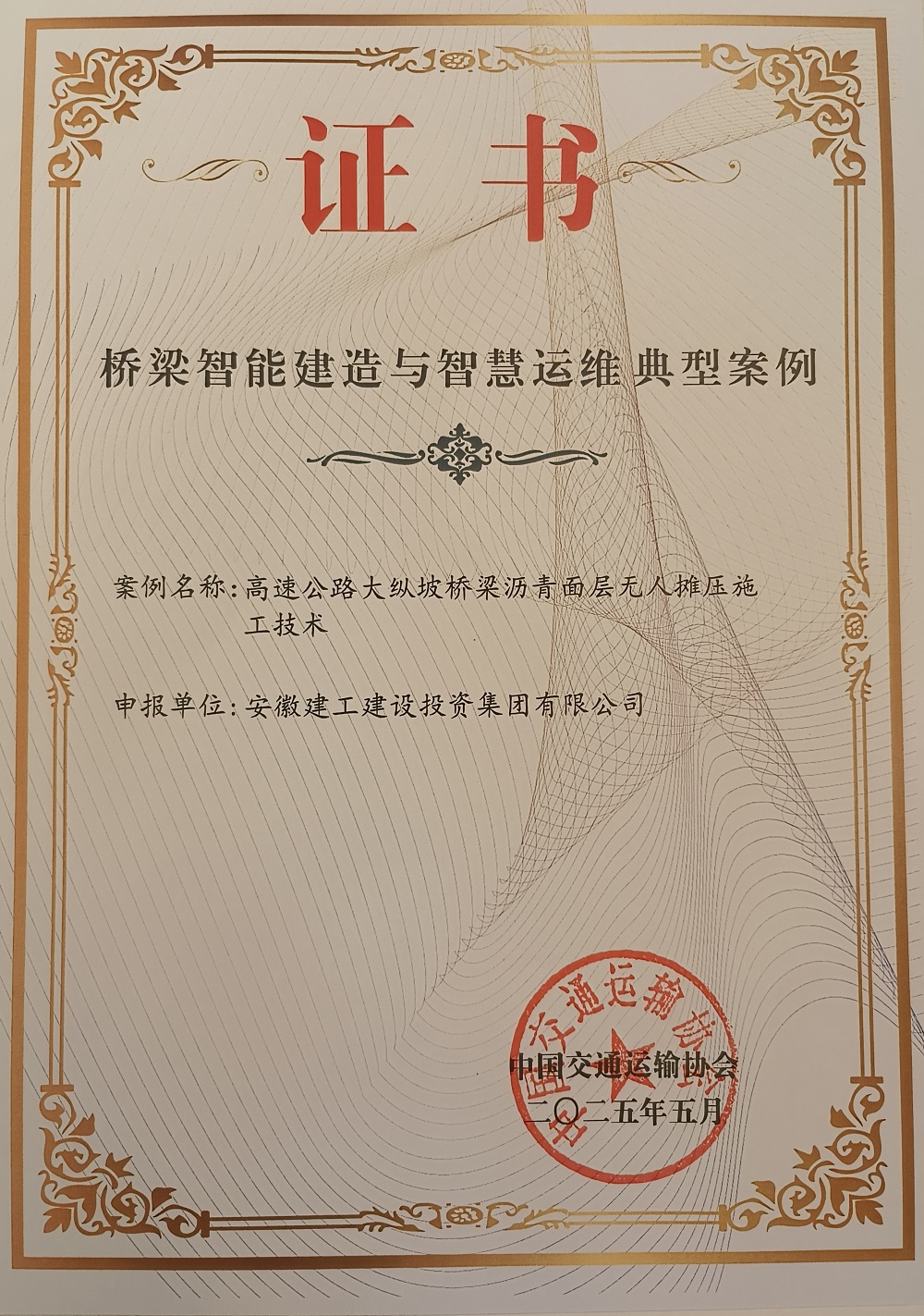 近期,中国交通运输协会新技术促进分会发布了关于“桥梁工程智能绿色建造与智慧运维”典型案例、优秀案例推荐名单。建工建投集团所申报的“高速公路大纵坡桥梁沥青面层无人摊压施工技术”获典型案例,“BIM +智慧工地管理系统在桥梁施工中的应用”获优秀案例。