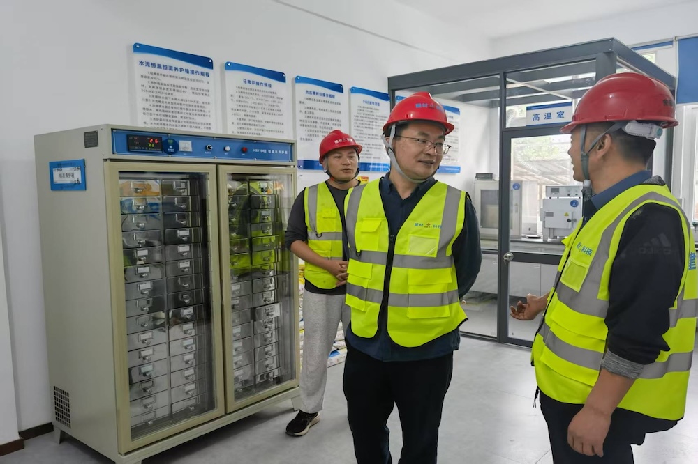 调研中,李鑫围绕“市场网、质量网、资源网”三网进行详细了解,营销、实验室、生产部门负责人围绕商砼生产经营、质量把控、物资管理一一汇报,实验室就质量检测数据与配合比优化成果详细讲解。李鑫就提升生产效率、加速成果转化、安全生产等,与负责人深入交流要按照集团项目管理手册,强化物资管理、安全、环保管理。