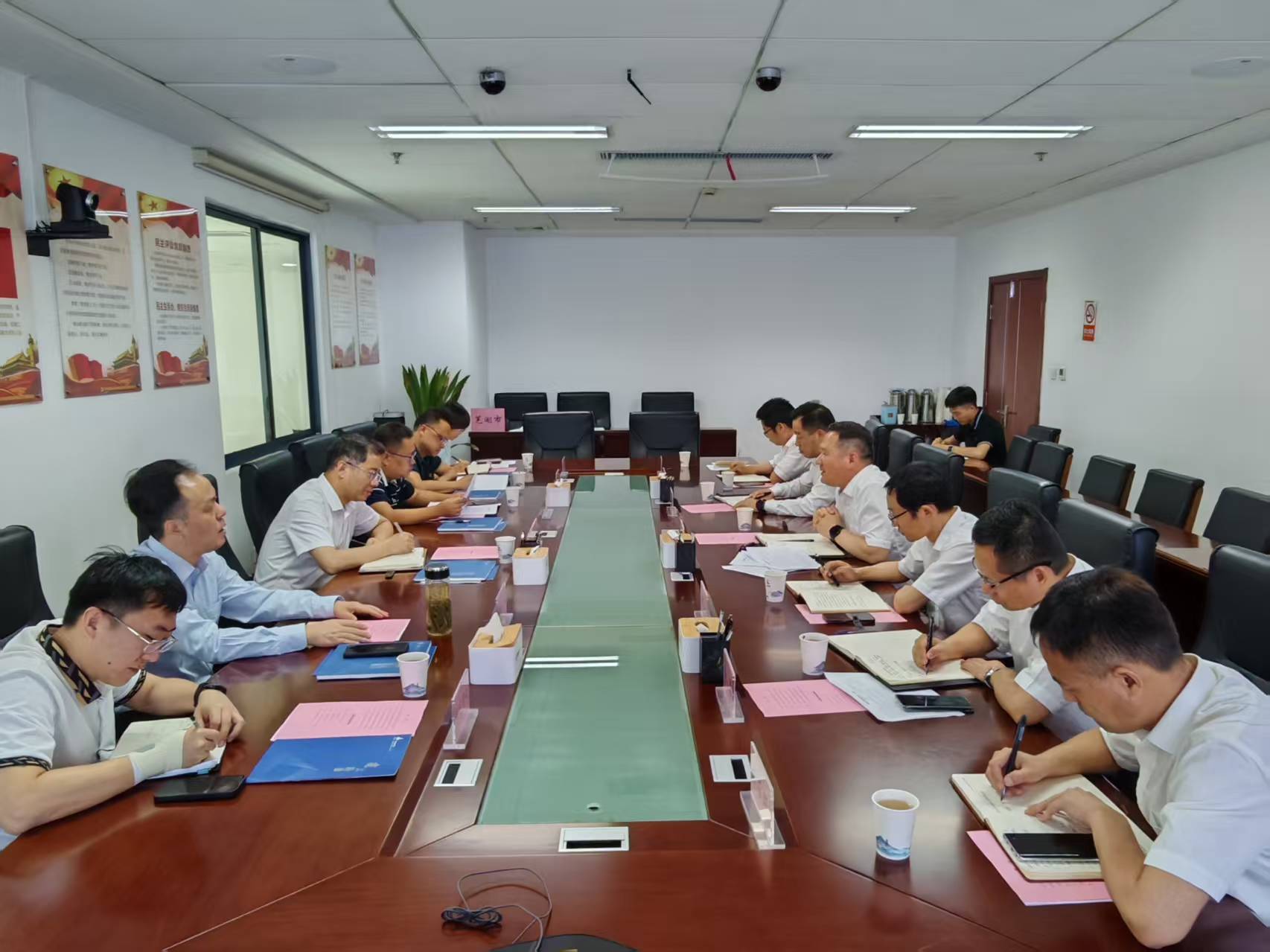 6月5日上午,建工路港公司党委书记、董事长钱叶琳率队拜访芜湖市交通运输局,与交通局党委书记、局长黄汇文举行工作会谈。