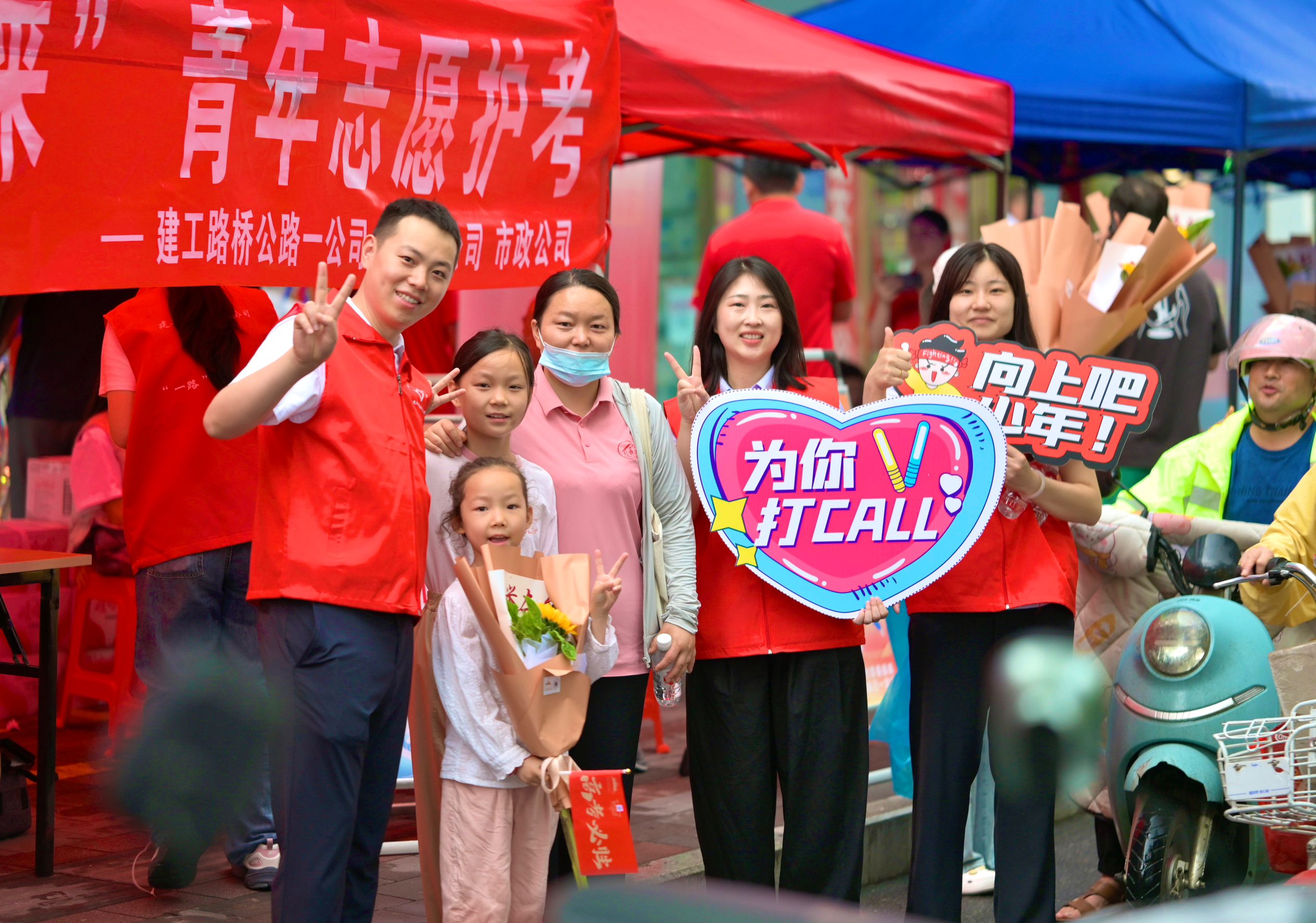 6月7日清晨,高考大幕初启,建工路桥公司志愿者早早在考点外准备就绪,为奔赴考场的莘莘学子护航。志愿者们纷纷化身“护考员”,为学子及家长准备好矿泉水、防暑贴,支起了帐篷供家长歇脚,做好迎考保障,在考前给考生加油打气,缓解考前压力,鼓舞信心,并备好了文具,为考生提供及时的“支援”。