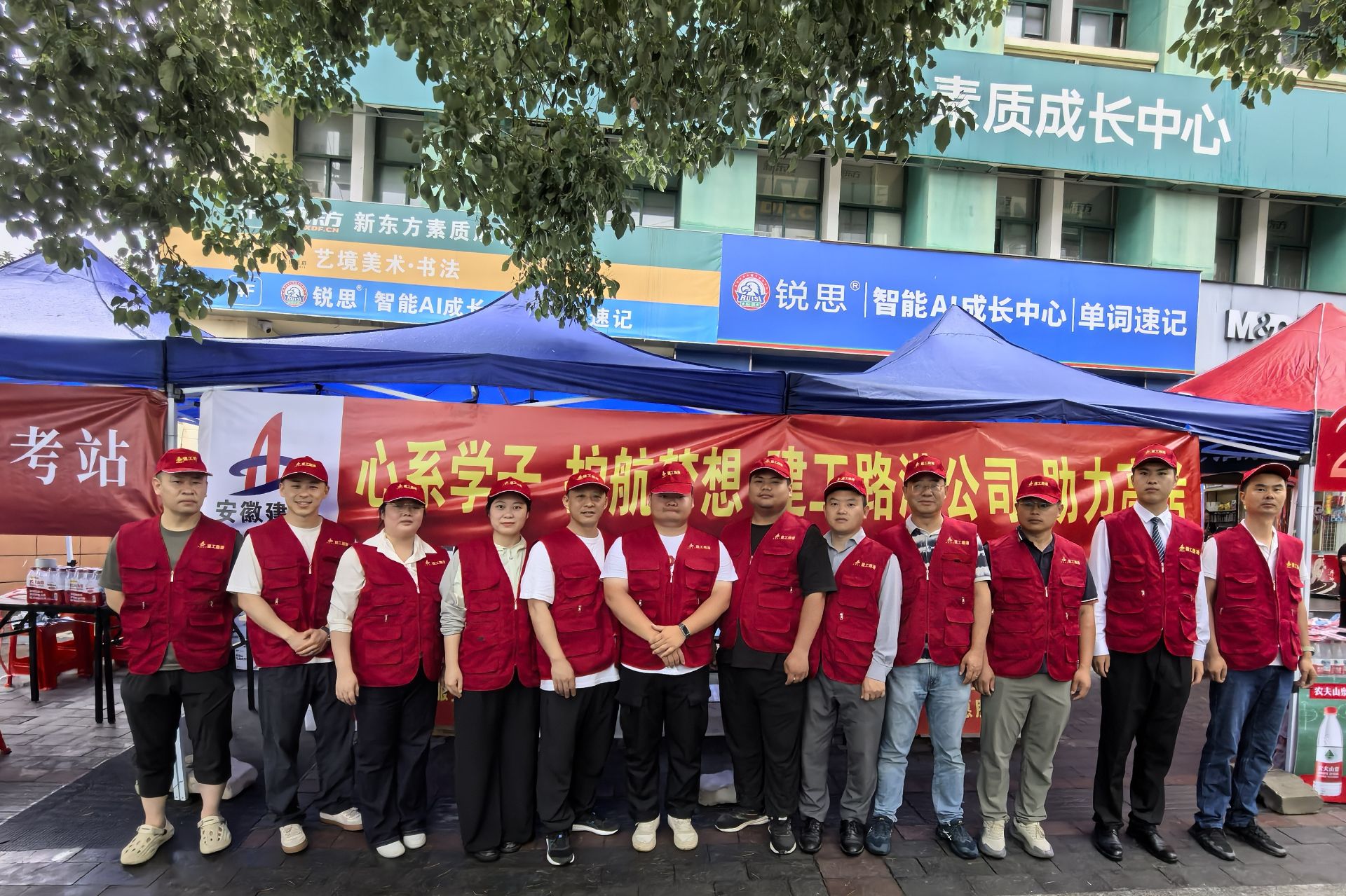 6月7日,建工交航公司市政分公司(王家坝建投)携手淮河、阜东社区组成高考志愿服务队,在阜南一初、实验中学考点支起“爱心助考驿站”。志愿者们提前支起遮阳棚,为考生和家长递上冰镇矿泉水、防暑药品与备用文具,用连续六年的坚守为高考学子护航,让考场外充满暖心服务的温度。