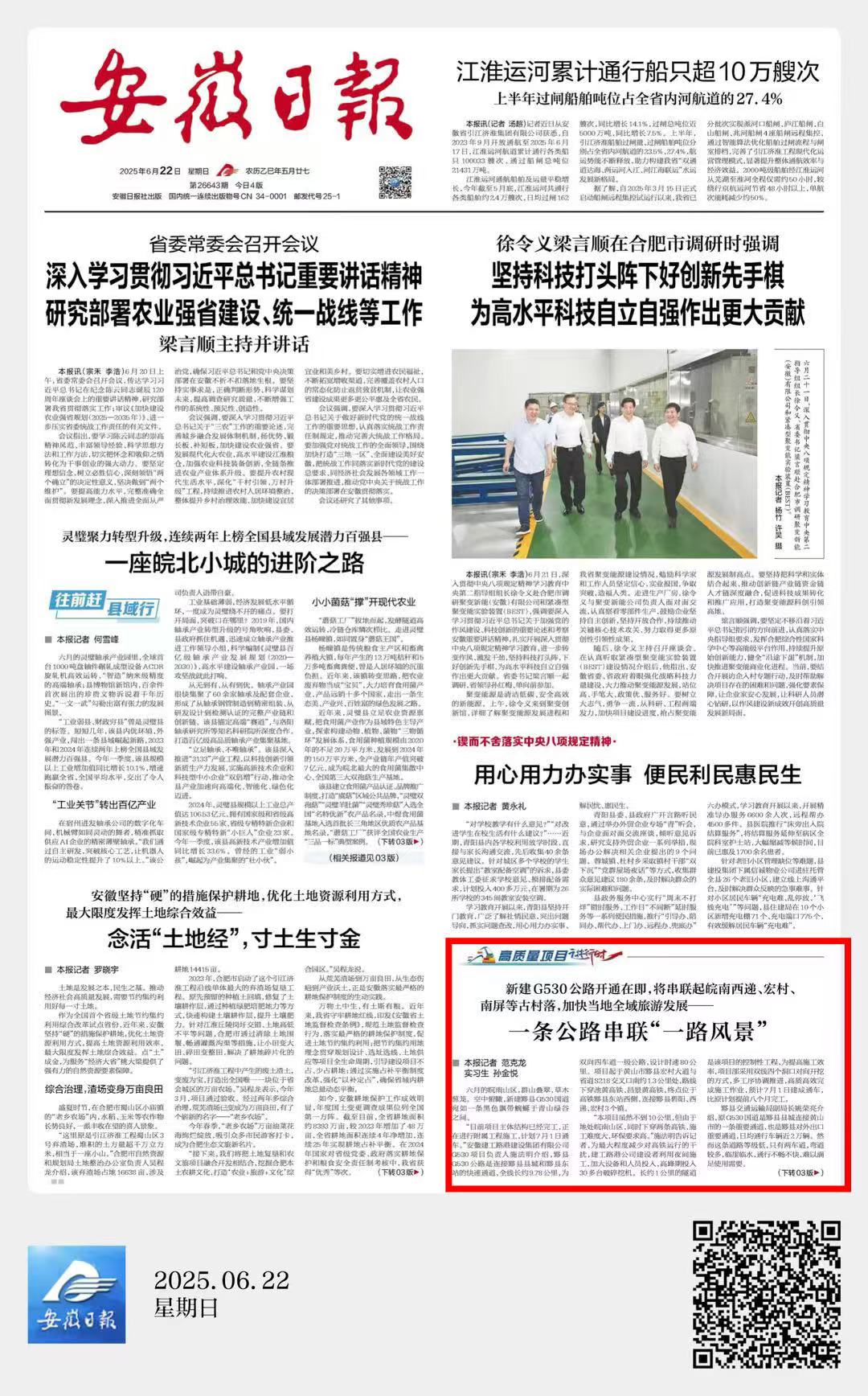 日前,安徽日报以“一条公路串联‘一路风景’”为题,头版专题报道了建工路港公司承建的黟县G530项目建设情况。