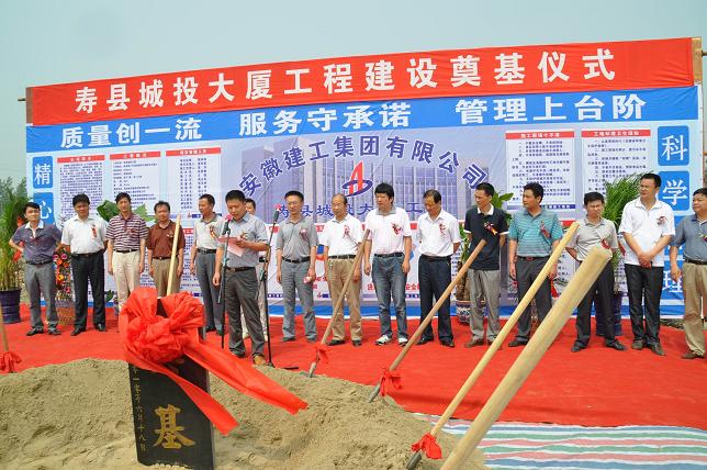 6月18日上午,安徽建工国内公司承建的寿县城投大厦工程顺利开工。寿县县政府、县纪委、县行政服务中心、县金融办、县财政局、县建设局、县招标局、县城投公司、八公山乡、合工大监理公司等有关单位或部门的负责人参加开工典礼。安徽建工国内公司副总经理郭明之、总经理助理张冲出席了仪式。