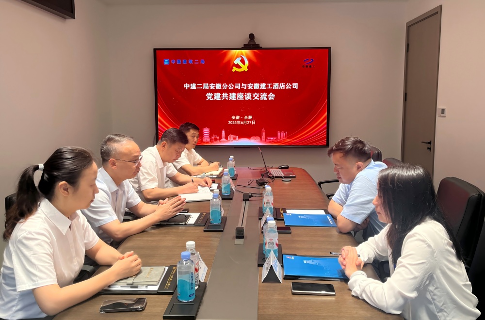 6月27日,建工酒店公司与中建二局安徽分公司开展党建共建座谈交流会。公司党委副书记、副总经理聂猛,中建二局安徽分公司党委副书记、纪委书记、工会主席黄橙参加座谈会。会上,双方围绕彼此在业务领域合作、党建联建等方面展开深入交流。