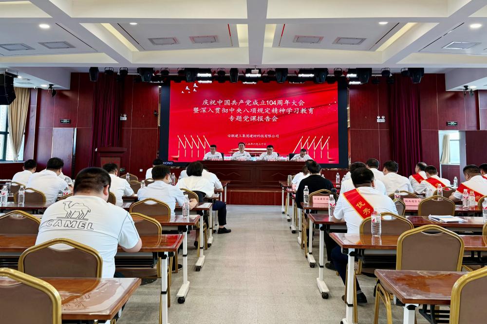 6月30日下午,安徽建工集团建材科技有限公司召开庆祝建党104周年表彰大会暨深入贯彻中央八项规定精神学习教育专题党课报告会,公司党委副书记、副总经理、董事李鑫出席会议并作题为《锲而不舍落实中央八项规定精神,以作风建设新成效推进建工建材高质量发展行稳致远》的专题党课。公司党委委员、副总经理邵佳主持会议,公司领导班子成员出席会议。