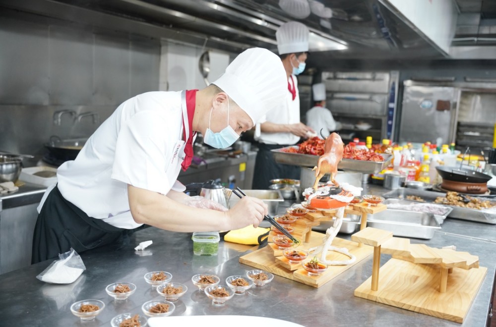 本次大赛以“厨间展绝技 匠心筑‘味’来”为主题,采用“酒店组+团餐组”双赛道模式,涵盖了中式烹调、传统面点、创意融合等多个项目,从食材选择、刀工处理、火候掌控到菜品造型、口味创新,全方位考验着厨师们的专业素养和创新能力,实现“以赛促学、以赛促练”的最终目的。