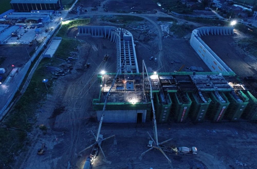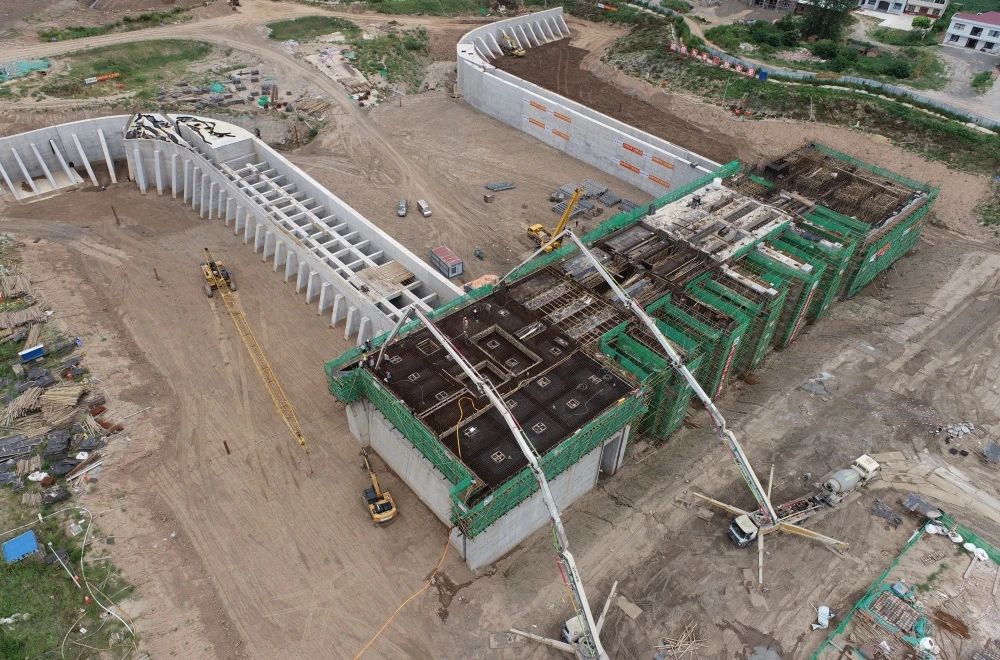 6日上午10时30分正式开仓,项目部投入2台汽车泵、16辆搅拌车及50余名施工人员。为确保高温下混凝土施工质量,项目部采取预埋冷却水管、加冰降温、洒水养护等技术措施,严控混凝土温度;各班组轮番作业、紧密配合,克服高温不利影响,最终圆满完成浇筑任务,为工程整体推进提供了有力保障。