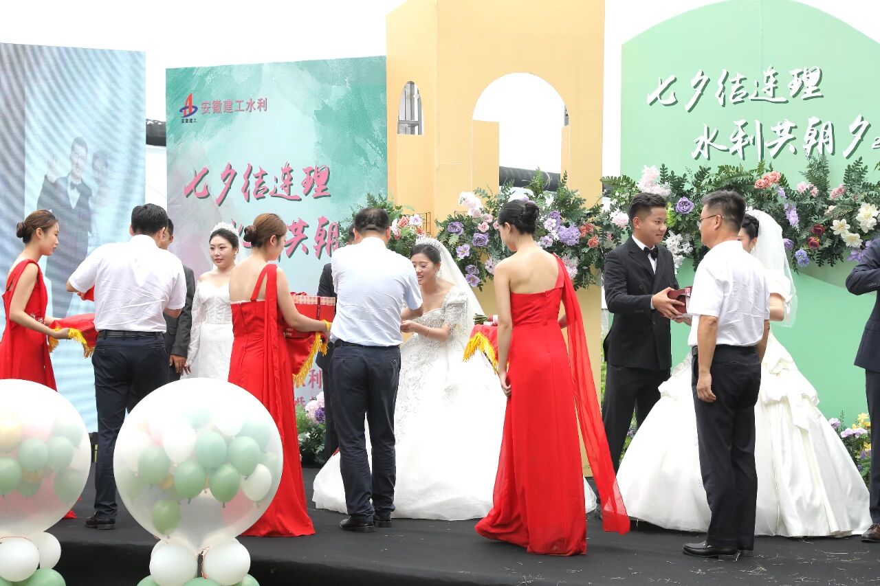 建工水利党委副书记、副总经理王胜利出席婚礼仪式并为6对新人证婚,公司领导方邦伍、张学富参加集体婚礼仪式。