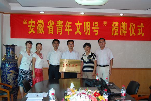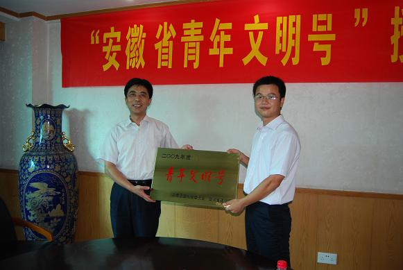 日前,从省建设厅文明办传来喜讯:安徽省公路桥梁工程公司六安淠望路大桥项目团支部荣获2009年度安徽省“青年文明号”光荣称号。7月27日下午,在路桥公司三楼会议室隆重举行了“安徽省青年文明号”授牌仪式,省建设厅文明办王一建主任向获得省级“青年文明号”的省路桥公司六安市淠望路大桥项目团支部授牌。授牌仪式由集团公司团委书记邢应梅主持,省建设厅文明办李玲副主任、公司党委书记陈光磊出席授牌仪式。