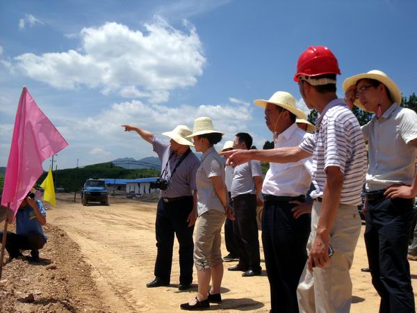 7月31日上午,湖南炎汝县委书记李晖(女)莅临安徽建工集团国内公司炎陵至汝城高速01标检查指导工作,炎汝高速公司总经理刘立国等同志陪同检查。