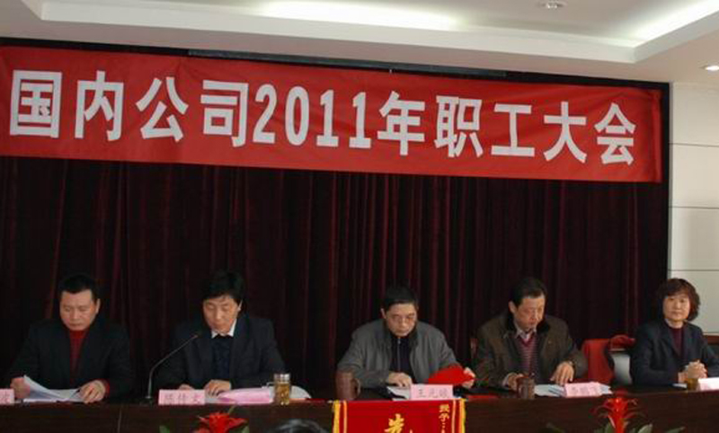 集团公司工会副主席李鹏飞也到会并发表讲话。会上还表彰了公司2010年度先进集体和先进个人,为2010年目标管理突出的业务部门颁发了奖金;签订了2011年目标管理责任书、基层党建工作目标管理责任书;听取了财务部副经理刘婷作的《2010年国内公司财务分析报告》。