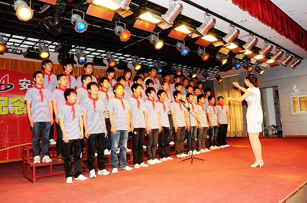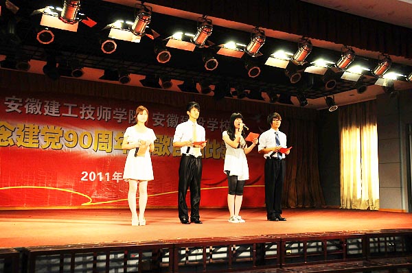 日前,安徽建工技师学院学术报告厅歌声激昂,欢声雷动,该院在这里隆重举行了由12支代表队共300多人参加的、以 “共唱激昂红歌 谱写青春华章”为主题的纪念建党90周年校园红歌合唱比赛决赛。党委书记钱森林发表了热情洋溢的讲话, 纪委书记、工会主席龚维加、各部门负责人及800余名师生共同观看了此次比赛。
