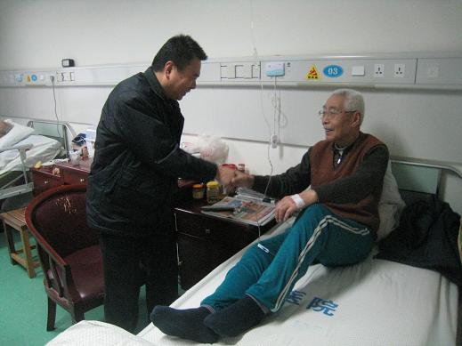 图为12月8日,该公司党委书记郑平同志在安徽医学院附属医院看望了住院老干部刘梅村同志。
