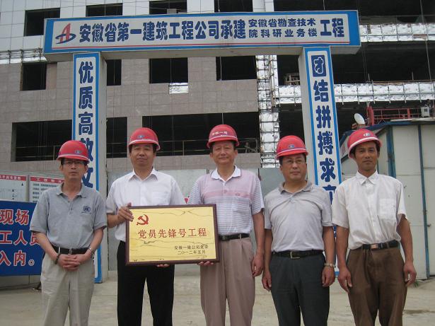6月5日,安徽一建公司党委郑军书记代表公司党委向安徽省勘查技术院科研业务楼工程授予《党员先锋号》工程奖牌。该公司总经理助理赵伯平参加了授牌仪式。