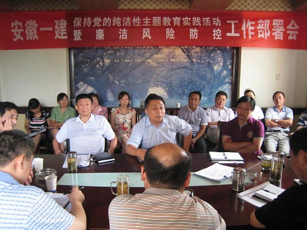 7月11日上午,安徽一建公司召开保持党的纯洁性主题教育实践活动暨廉洁风险防控工作部署会,公司领导班子成员、所属分公司党政领导、机关各部门负责人、项目经理等参加了会议。公司党委书记郑军作了主题部署,公司总经理范毓庆作了重要讲话。会议由党委委员、常务副总经理谢成贵主持。