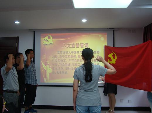 大会在高亢嘹亮的国际歌声中开幕。会上首先举行了“入党宣誓”活动,由公司党委办公室主任姚春静领誓,3名新党员面对鲜红的党旗举起右手,庄严宣誓。