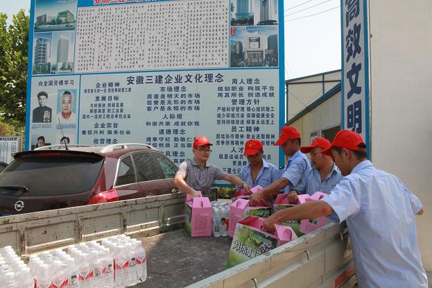今年7月份以来,受副热带高压影响,我省天气晴热,合肥地区持续高温。为紧密围绕高温时期工作重点,积极配合施工生产,做好高温时期的安全生产工作,三建公司团委在8月14日组织青年志愿者,分别前往合肥市七中搬迁工程、中国科学技术大学研发试验楼工程、力高共和城倾城水乡西四期工程等三个项目部,开展“1+1”志愿服务活动,即以一线班组农民工为服务对象,开展一次高温安全教育,进行一次防暑慰问。同时,号召所属团支部、直属项目部组织志愿者,结合各单位、各项目部工作实际,积极开展“1+1”志愿服务活动。