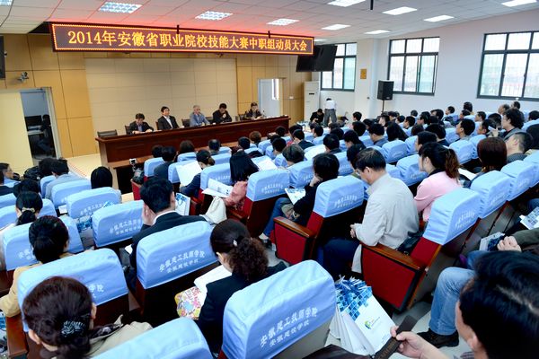 2014年4月12日安徽建工技师学院彩旗飘扬,彩虹门高耸,由省教育厅、省经济和信息化委员会、省财政厅、省人力资源和社会保障厅联合主办的安徽省职业院校技能大赛在该院拉开帷幕。省教育厅厅长程艺亲临比赛现场指导。