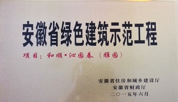 同时,根据安徽省财政厅、住房和城乡建设厅《关于下达绿色建筑及建筑产业现代化以奖代补资金的通知》[2015]802号文件精神,和顺·沁园春项目也获得省财政厅下拨“以奖代补”专项资金。