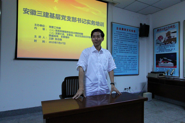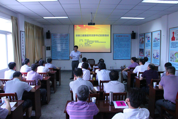 7月17号下午,安徽三建公司党委工作部举办了一期党支部书记实务培训班,全公司37个基层党支部的负责人悉数到会参加培训。