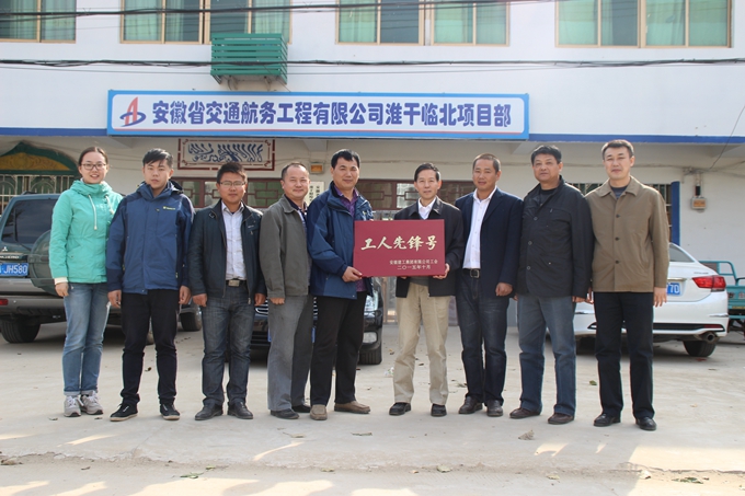 2015年11月3日,集团工会主席徐晓光一行莅临安徽省交通航务工程有限公司淮干项目部调研,安徽交航工会主席王永来,纪委书记李杨陪同。