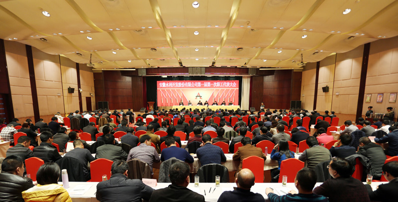 2015年12月25日上午,安徽水利开发股份有限公司第一届第一次职工代表大会首次会议在安徽水利锦江大酒店召开。会议听取工会委员会工作报告,选举了出席安徽建工集团首次职代会的职工代表,以及安徽水利第一届工会委员会委员。