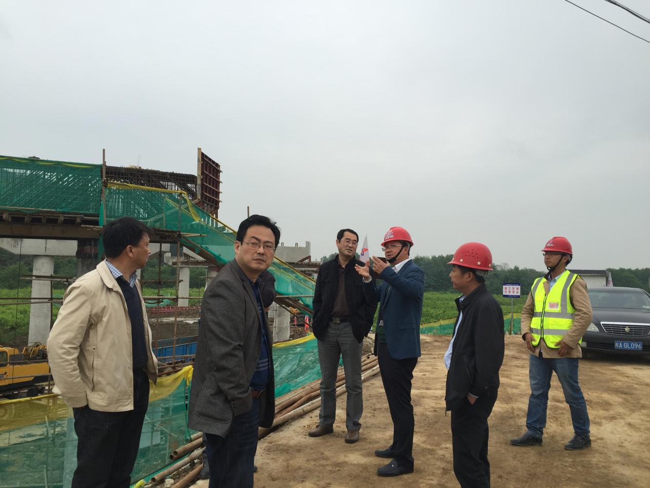 4月27日下午,安徽省公路局副局长孙东根在池州市公路局局长汪伟、副局长姚成玉、项目办主任王岁高的陪同下莅临安徽路港G318南陵界至青阳段改建工程项目部检查指导工作。