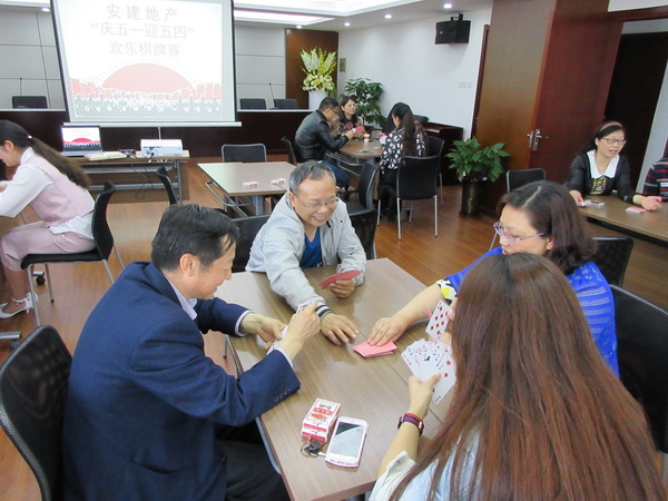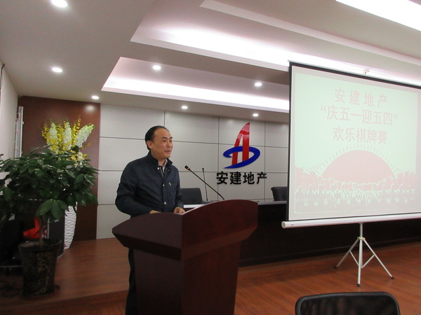 为热烈庆祝“五一”劳动节,进一步丰富安建地产公司员工的业余生活,缓解紧张的工作压力,4月29日下午,安建地产公司举办了“迎五一庆五四”欢乐棋牌赛活动,公司总经理、党总支书记杨斌参赛并进行赛前动员讲话。
